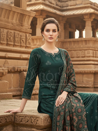 Mehndi Green Sleeveless Cotton Kurta Set with White Pattern