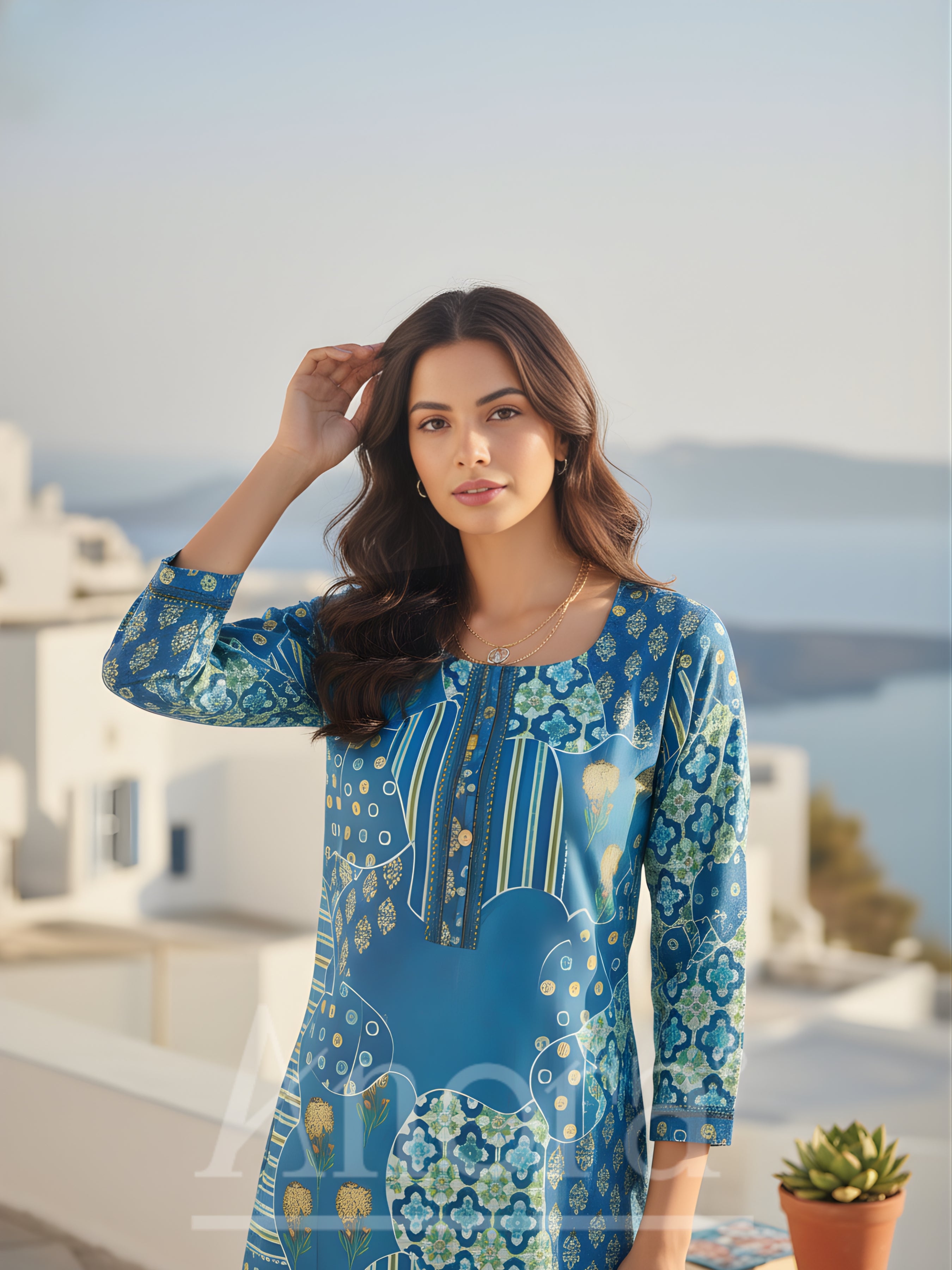 Elevate your everyday style with this elegant Anora Blue Printed Women’s Tunic, crafted for comfort and effortless sophistication. Designed with a modern artistic print and a flattering straight silhouette, this tunic blends contemporary fashion with breathable comfort.